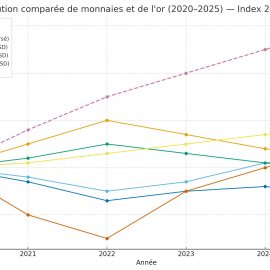 Or et devises. Feuilles d’or et cordes silencieuses Sur les routes creusées par la peur,la voix s’élève, lente.Un violoncelle pleure,nuancé, grave. L’or scintille dans la poussière des marchés, il ne ment pas.Il attend.... Pour en savoir plus