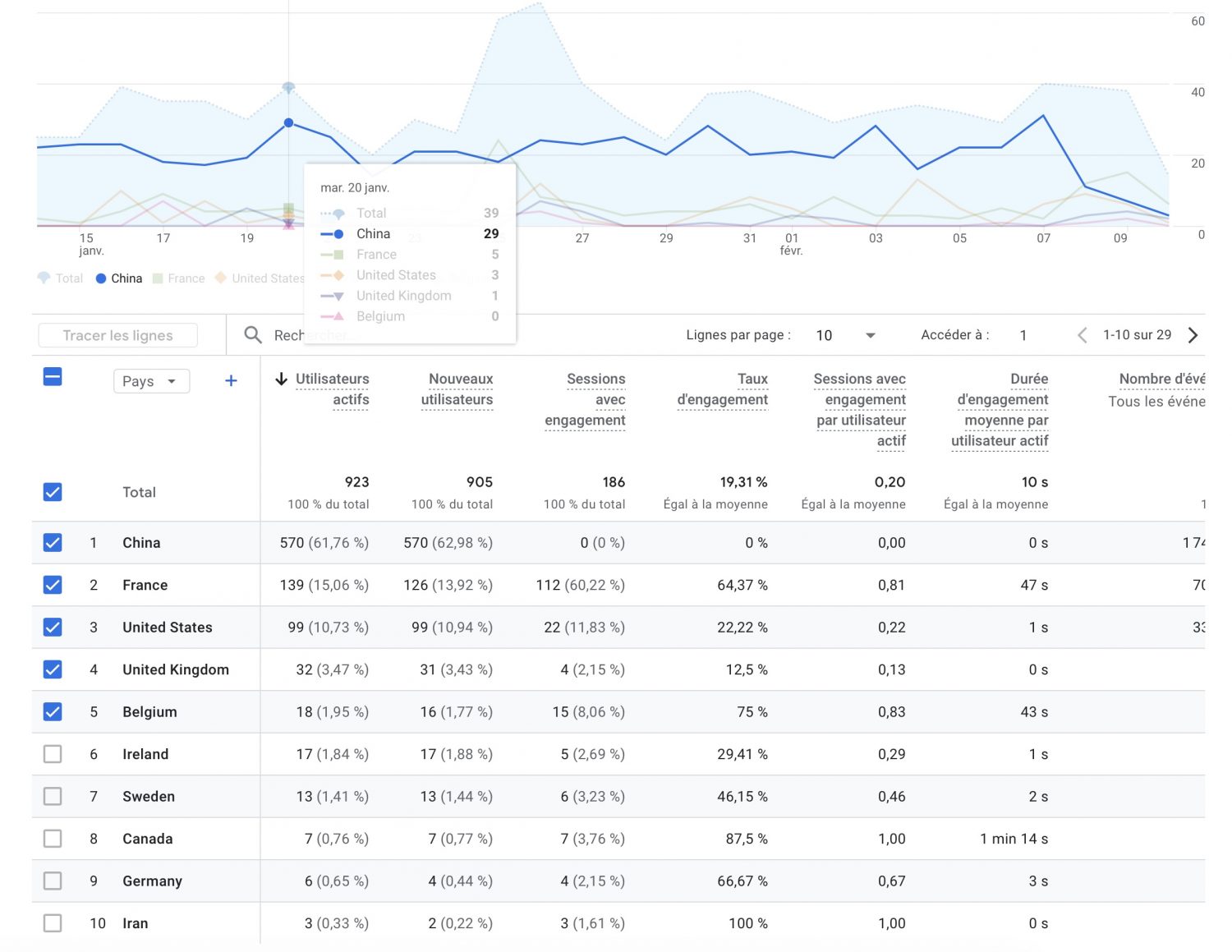 Les tableaux indicatifs de fréquentation du blog (ci-dessus), proposés par Google peuvent surprendre.